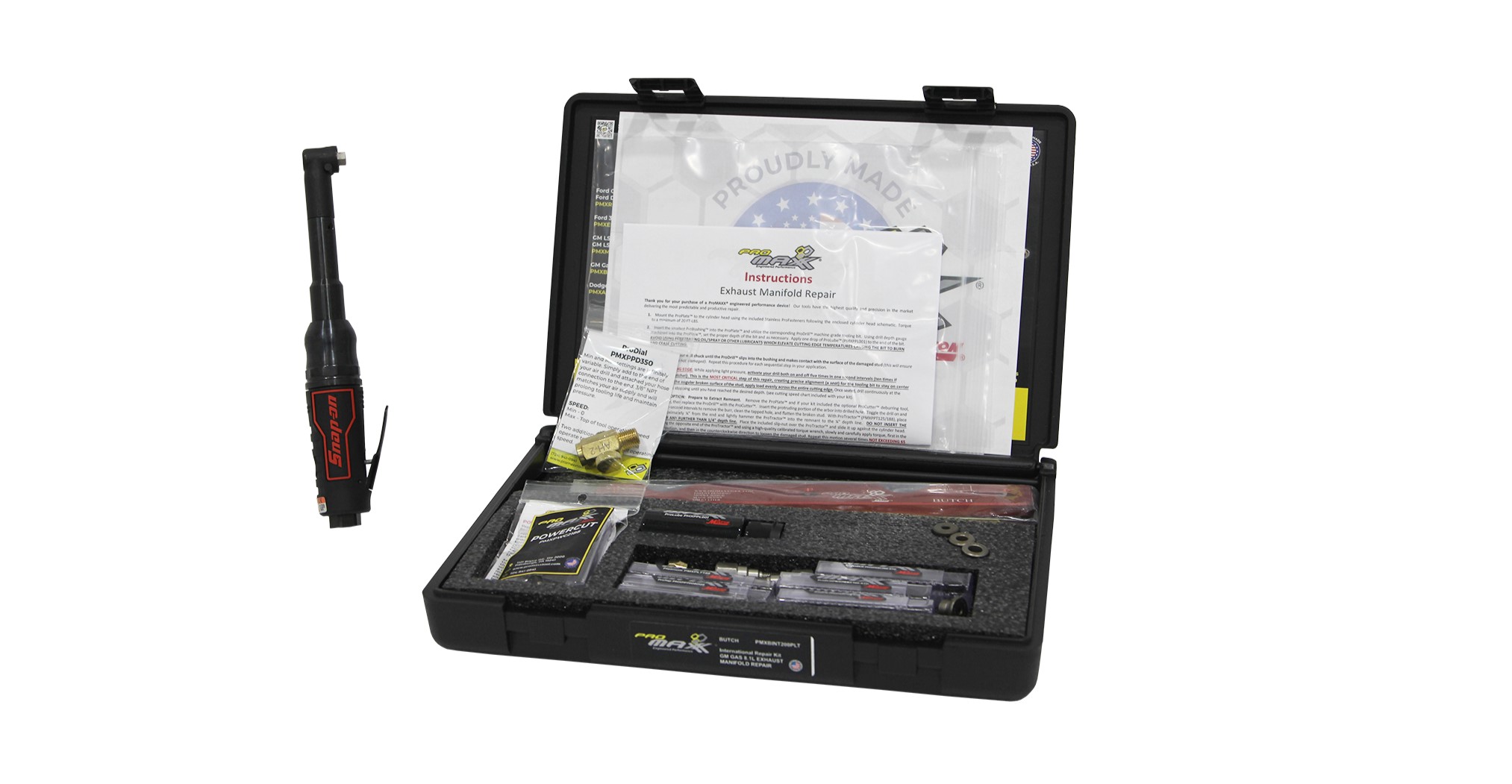 The Promaxx Exhaust Manifold Bolt Extractorless kit is for drilling out broken exhaust manifold bolts without the use of extractors.